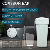 4. Солевой бак 70л (в сборе) серый: Емкость для приготовления раствора поваренной соли (NaCl), используемого для автоматической регенерации фильтрующей смолы.