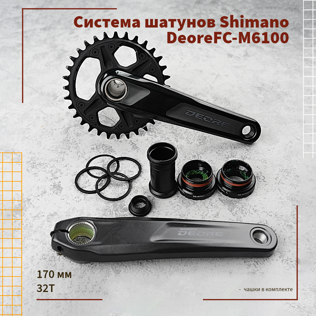 Купить Система шатунов Shimano Deore FC-M6100, 32T, 170 mm + каретка BB-MT501 с доставкой по всей России. Система шатунов Shimano Deore FC-M6100, 32T, 170 mm + каретка BB-MT501: сравнение цен, характеристики, фото, актуальное наличие и цены.