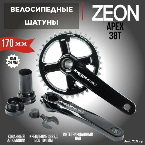 Система шатунов ZEON APEX, звёзда алюминиевая 38T, B.C.D 104 мм, Narrow Wide, шатуны 170 мм, кованый алюминий 6061-T6, вес системы 715 г /уп 10/: сравнение цен, характеристики, фото, актуальное наличие и цены.