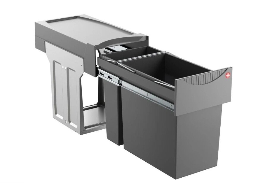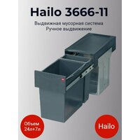 Система сортировки мусора Hailo Tandem 3666-11, ручное выдвижение, 2 ведра 24 и 7л, для шкафов от 30 см