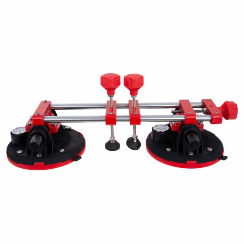 Механизм представляет собой жесткую конструкцию из металлических трубок. На ней установлены две мощных присоски. Каждая снабжена собственной помпой для создания разряжения под мембраной и способна надежно закрепляться на плите. А так же на каждой присоски есть манометр позволяющий контролировать давление прижима.