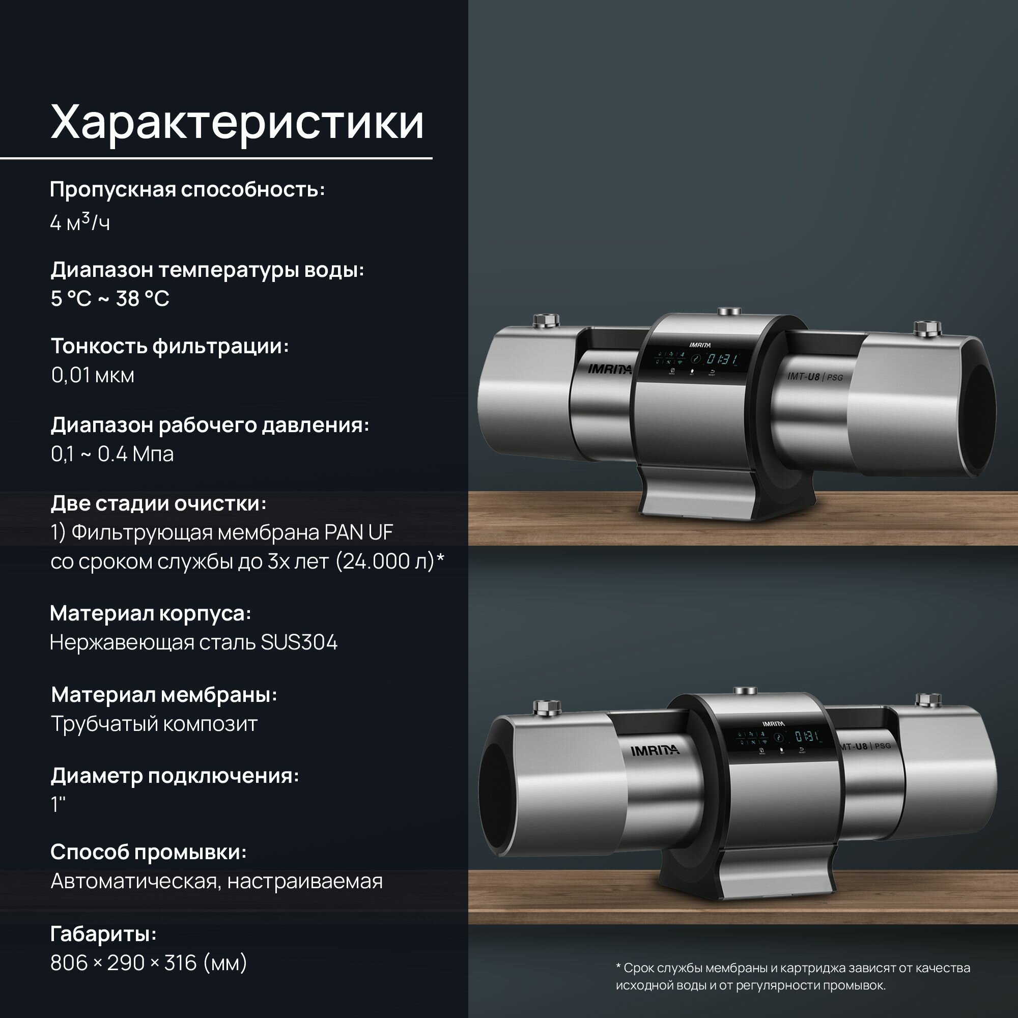Система IMRITA U8 PSG представляет собой профессиональное решение для очистки воды с расширенным функционалом и автоматизированным управлением, подходящее для коммерческого и промышленного применения.