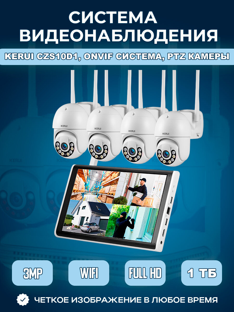 Система видеонаблюдения Kerui CZS10D1, система с экраном, PTZ камеры, 4 камеры по 3 МП, NVR, ONVIF, 1 Тб: сравнение цен, характеристики, фото, актуальное наличие и цены.