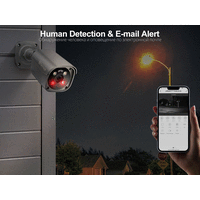 Когда он обнаруживает движение, загорятся 2 белых светодиода и с красно-синей световой сигнализацией, служат Предупреждение сдерживанием.