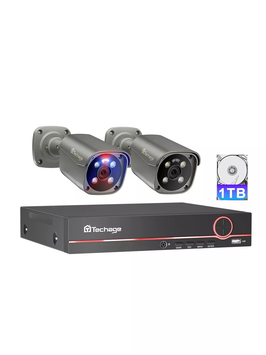 1 8-КАНАЛЬНЫЙ видеорегистратор+4 8-мегапиксельные камеры видеонаблюдения POE, без жесткого диска Основные характеристики: 1.Наша новая 8-мегапиксельная система POE-камер.Конструкция 8-канального видеорегистратора поддерживает подключение до 8 камер. Вы можете приобрести IP-камеры Techage POE для расширения вашей системы видеонаблюдения. 2.Если вы одновременно используете 8-канальный POE-коммутатор, он может быть расширен до 16CH 8-мегапиксельных POE-камер. 3.Наш видеорегистратор поддерживает разрешение до 4K и 8 МП. 4.Все камеры оснащены встроенными микрофонами и динамиками, которые поддерживают двустороннее аудио. 5.Поддержка самодельных сирен и тревожных звонков / кастомизация. 6.Новейшая камера с искусственным интеллектом поддерживает распознавание лиц. 7.Три настройки ночного режима: ночное видение, режим ночного видения и полноцветное ночное видение. 8.Удаленный доступ P2P / многопользовательский: Технология P2P позволяет вам использовать свою учетную запись P2P в приложении через