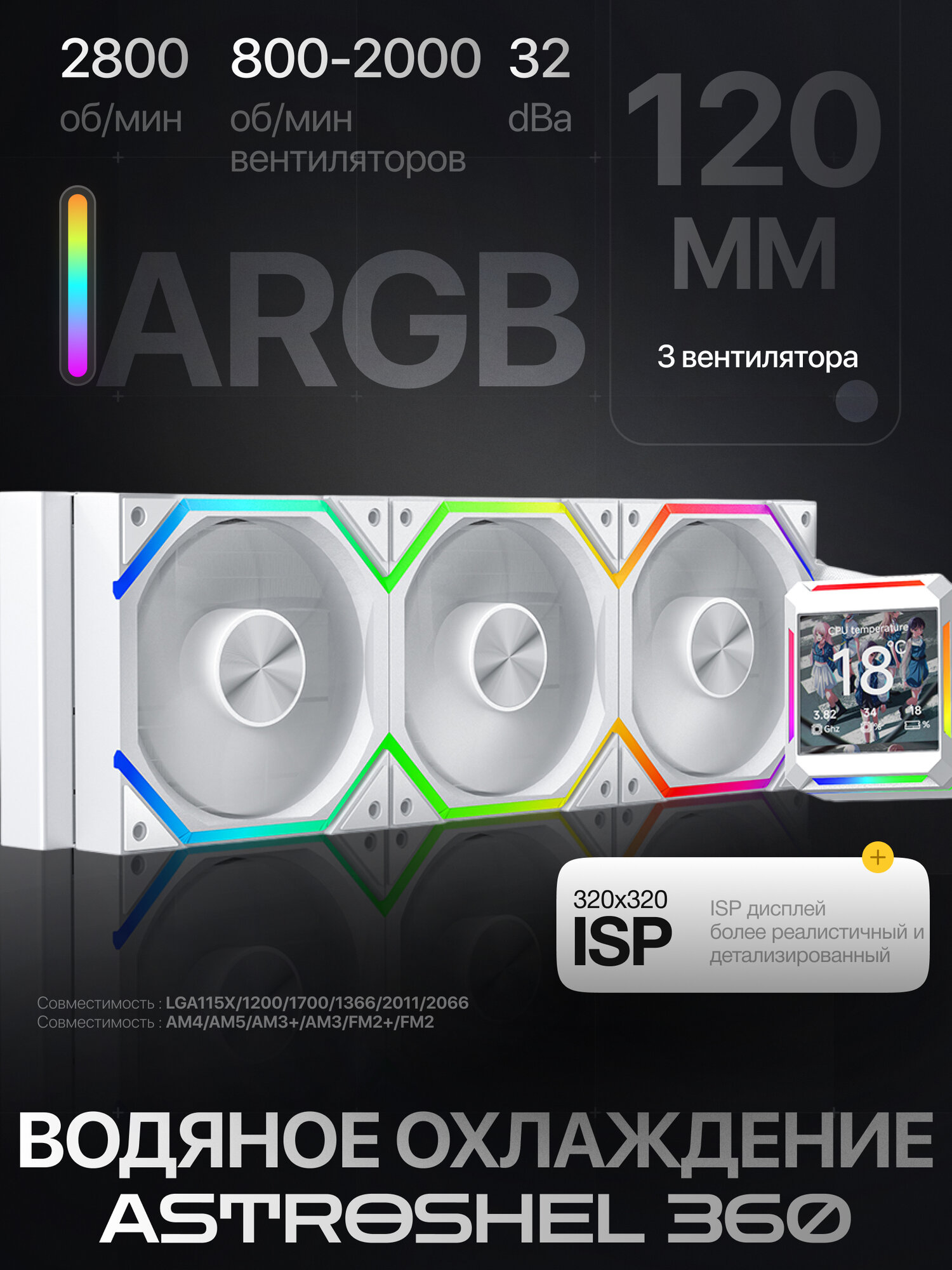 Система водяного охлаждения Jungle Leopard AstroShel ARGB 360, LCD дисплей, белый: сравнение цен, характеристики, фото, актуальное наличие и цены.
