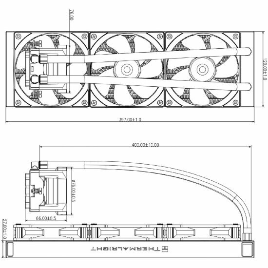 Система оснащена тремя вентиляторами диаметром 120 мм, которые обеспечивают максимальный воздушный поток 72.37 CFM. Максимальная скорость вращения вентиляторов составляет 2000 об/мин, что позволяет снизить уровень шума до 27.7 дБ.