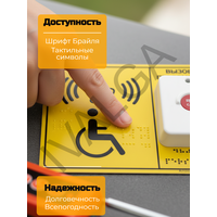 Система вызова помощи персона для инвалидов и маломобильных людей. Тактильная табличка с кнопкой вызова персонала и приемником для инвалидов, пожилых, маломобильных людей
