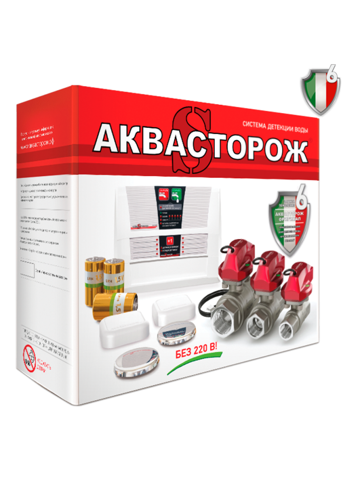 Электронно-механическая система «Аквасторож Классика+» cостоит из трех компонентов – контроллера, шарового электрокрана и датчика протечки «Аквасторож», предназначена для информирования пользователя о протечке воды и минимизации последствий аварии в системе водоснабжения.