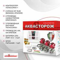 Набор защиты от протечек в доме с новыми приводами собственной разработки «Аквасторож Оригинал» и с итальянскими кранами RuB от BONOMI – инновация в области детекции потопов. Его отличает мощность привода, стильный дизайн и эргономичность.