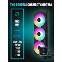 DeepCool LS720 SE совместима с сокетами AM4, AM5, LGA 1150, LGA 1151, LGA 1155, LGA 1200, LGA 1700 и поддерживает процессоры Intel и AMD.