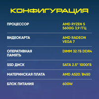 SSD-диск на 1 ТБ гарантирует быстрый доступ к данным и загрузку операционной системы и приложений. Данный игровой компьютер станет отличным выбором для любителей компьютерных игр, а также для тех, кому нужна мощная и надежная рабочая станция.