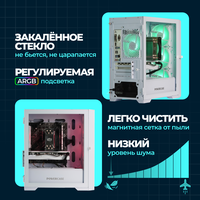 Этот игровой компьютер не только мощный, но и эффектный. Современный корпус с яркой RGB-подсветкой позволяет настроить освещение по своему вкусу, создавая уникальную атмосферу. А закаленное стекло делает внешний вид стильным и подчеркивает премиальное качество сборки.