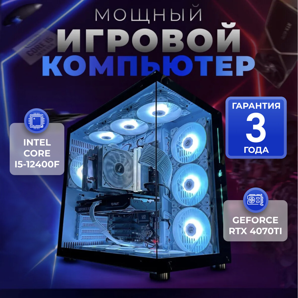 Игровой компьютер компьютер (intel CORE-i5 12400f, RTX 4070Ti 12ГБ, ОЗУ 32 ГБ, SSD 2TB SSD M2 SUPER) – мощный игровой компьютер для настоящих геймеров!