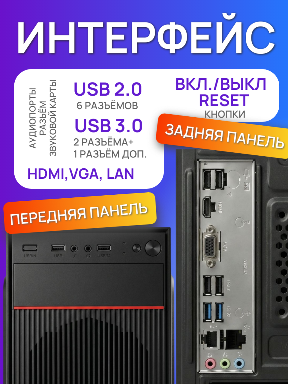 Блок питания на 400 Вт гарантирует стабильную работу всех компонентов.