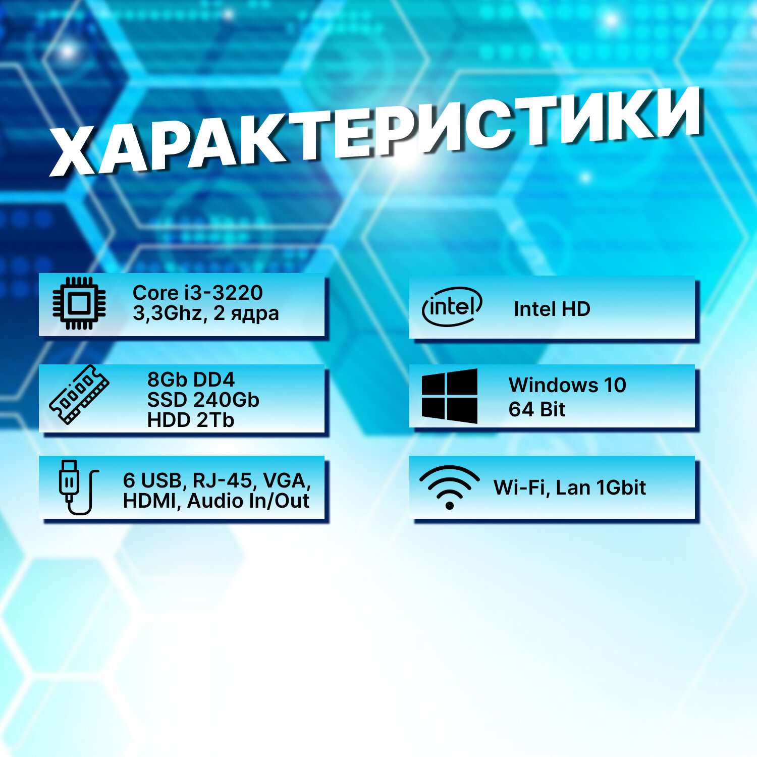 Системный блок Intel Core I3-3220 (3.4ГГц)/ RAM 8Gb/ SSD 240Gb/ HDD 2Tb/ Intel HD/ Windows 10 Pro / Антивирус: сравнение цен, характеристики, фото, актуальное наличие и цены.