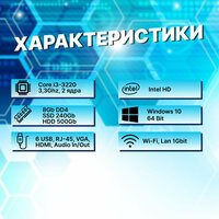 Купить Системный блок Intel Core I3-3220 (3.4ГГц)/ RAM 8Gb/ SSD 240Gb/ HDD 500Gb/ Intel HD/ Windows 10 Pro / Антивирус с доставкой по всей России.