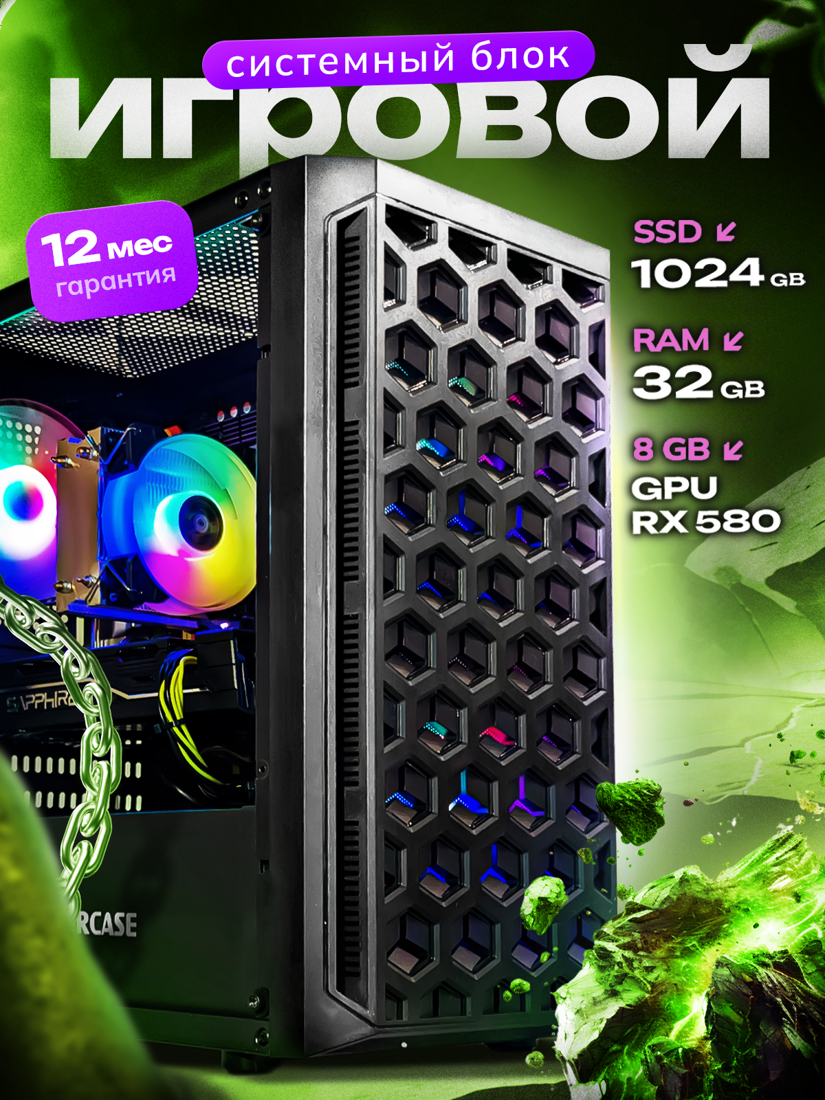 Системный блок ПК Игровой компьютер (i7 7700 (аналог), RAM 32 ГБ, SSD 1024 ГБ, RX 580 (8 Гб), Windows 10), черный: сравнение цен, характеристики, фото, актуальное наличие и цены.