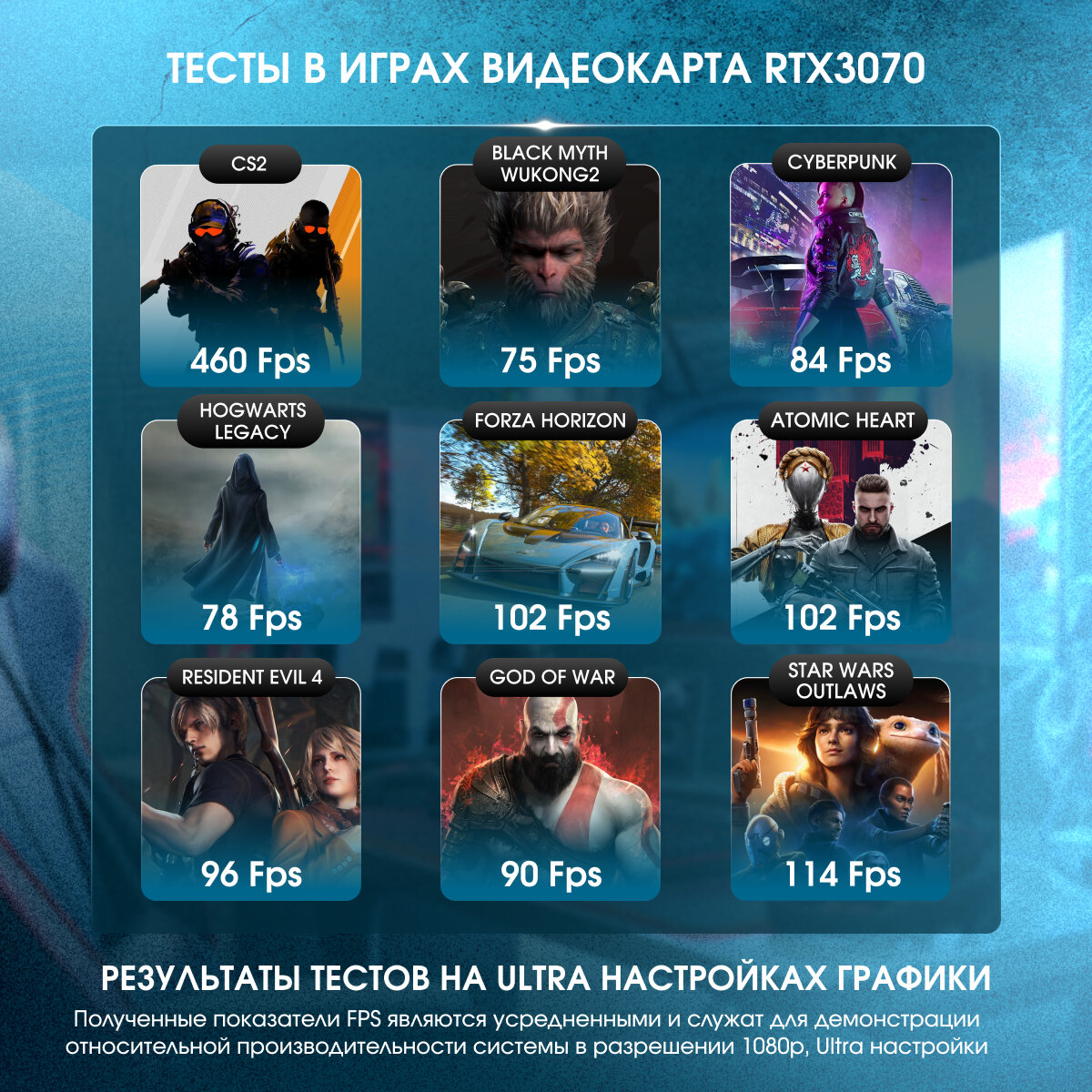 Технические характеристики: ✅ Процессор: Игровой ПК (RYZEN 5 5600 – высокая производительность для игр и работы. ✅ Видеокарта: RTX 3070 8ГБ – отличная графика и высокая частота кадров. ✅ Оперативная память: ОЗУ 16ГБ – моментальная загрузка и плавность работы. ✅ SSD: SSD 512ГБ) – быстрый запуск системы и игр.