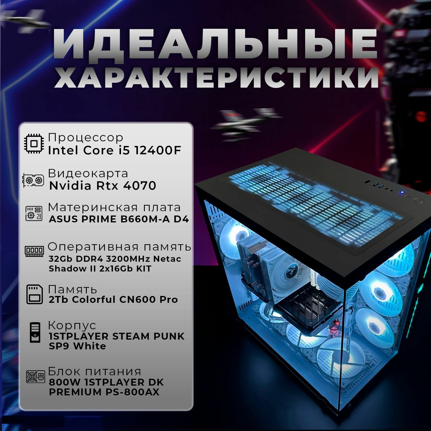 Купить Системный блок игровой мощный для компьютера ПК intel CORE i5 12400F, GeForce RTX 4070, 1TB SSD m2 с доставкой по всей России. Системный блок игровой мощный для компьютера ПК intel CORE i5 12400F, GeForce RTX 4070, 1TB SSD m2: сравнение цен, характеристики, фото, актуальное наличие и цены.