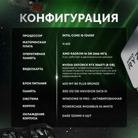 Технические характеристики: ✅ Процессор: Игровой ПК (intel CORE-i5 12400f – высокая производительность для игр и работы. ✅ Видеокарта: RTX 3060Ti 8ГБ – отличная графика и высокая частота кадров. ✅ Оперативная память: ОЗУ 16ГБ – моментальная загрузка и плавность работы. ✅ SSD: SSD 512GB) – быстрый запуск системы и игр.