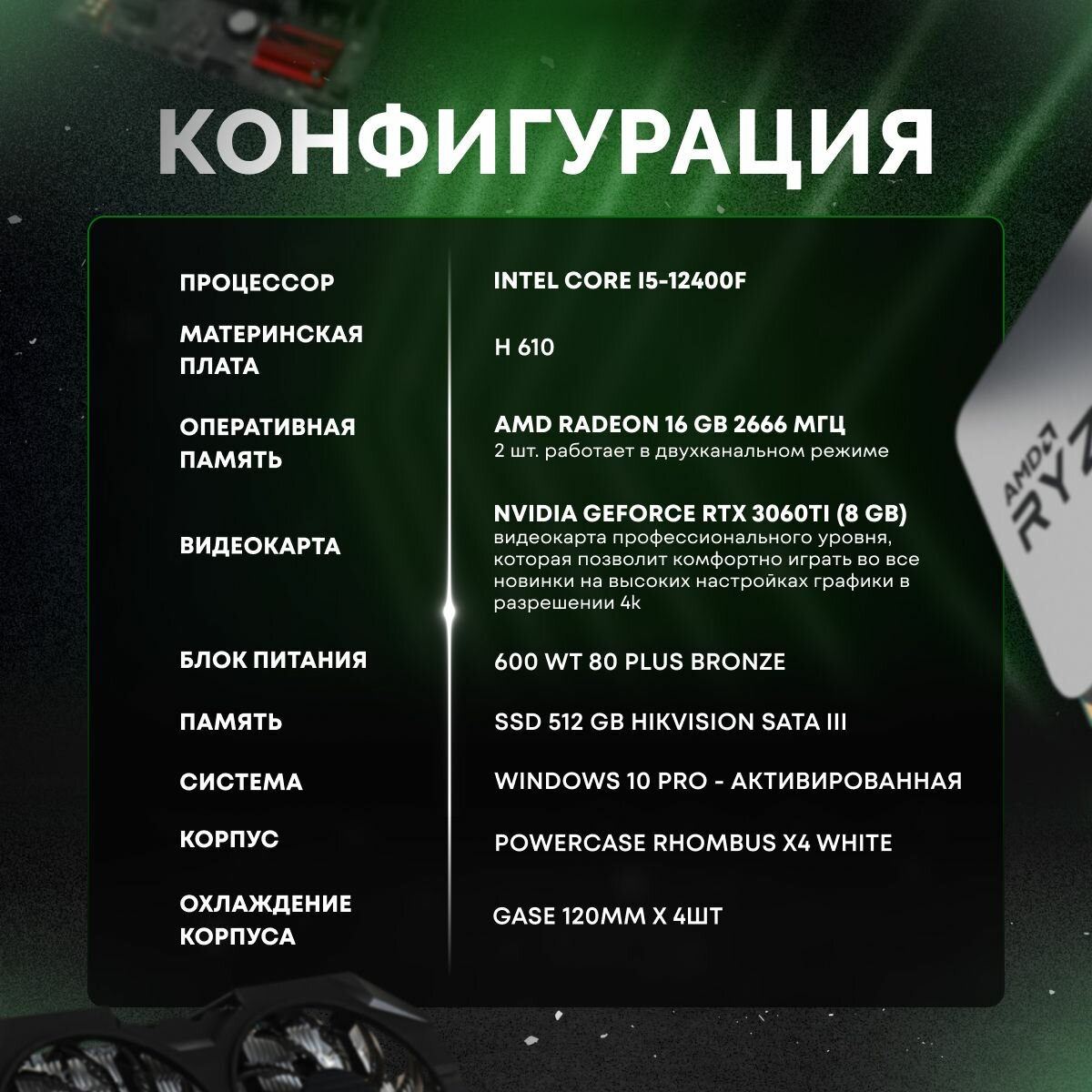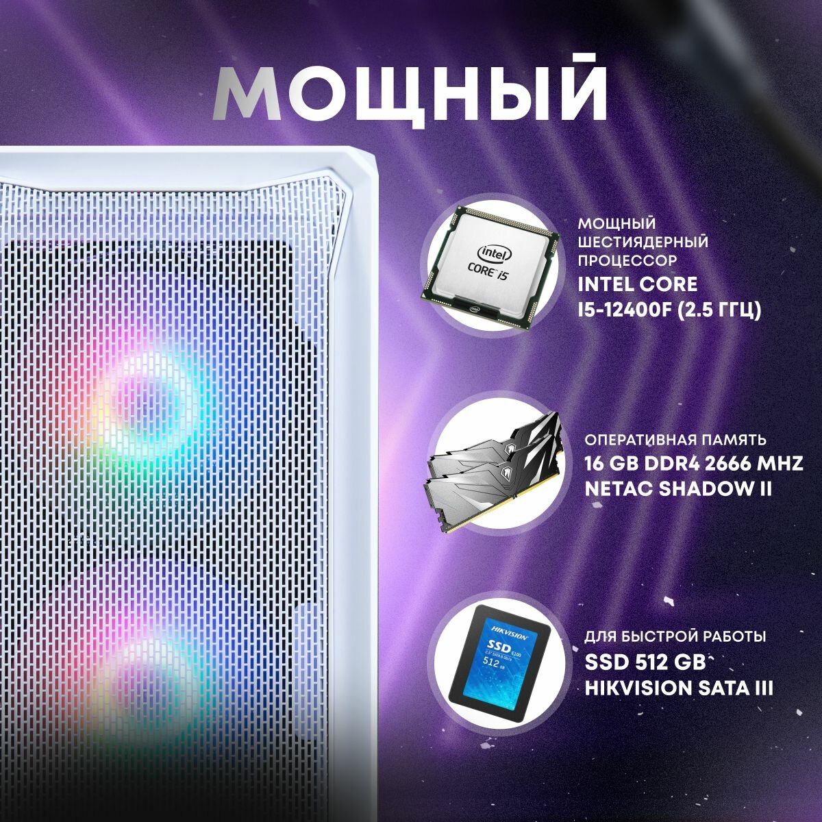 Игровой ПК (intel CORE-i5 12400f, RTX 3060Ti 8ГБ, ОЗУ 16ГБ, SSD 512GB) – мощный игровой компьютер для настоящих геймеров!