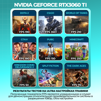 Купить Системный блок игровой мощный для компьютера ПК (intel CORE i7-12700F, RTX 3060Ti 8ГБ, ОЗУ 16ГБ, SSD 512GB) с доставкой по всей России.