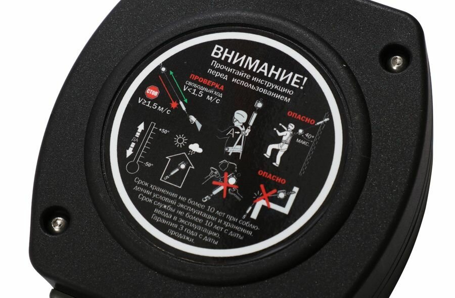 Одноплечевое компактное страховочное устройство втягивающего типа для предотвращения или моментальной остановки падения. В качестве фала используется трос. Интегрированный карабин с раскрытием 55 мм.