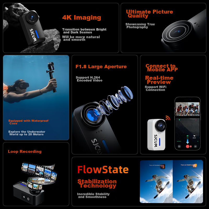 Купить SJCAM C110+ Thumb 4K Stabilized Waterproof Action Camera for Motorcycle Helmet Outdoor Riding Fishing First Person View Vlog Recorder without SD Card с доставкой по всей России.