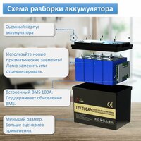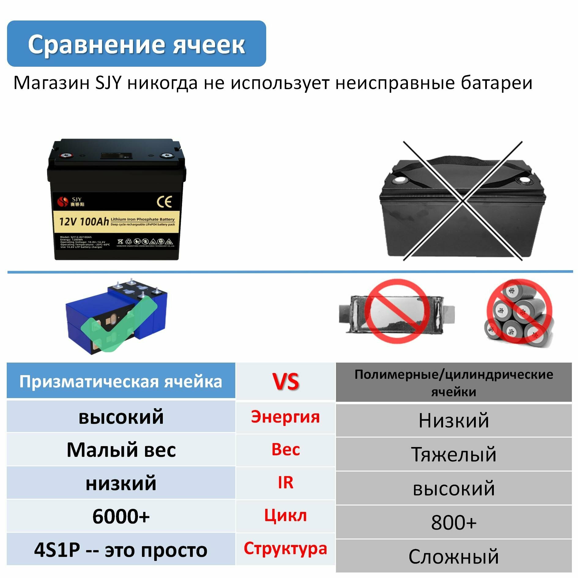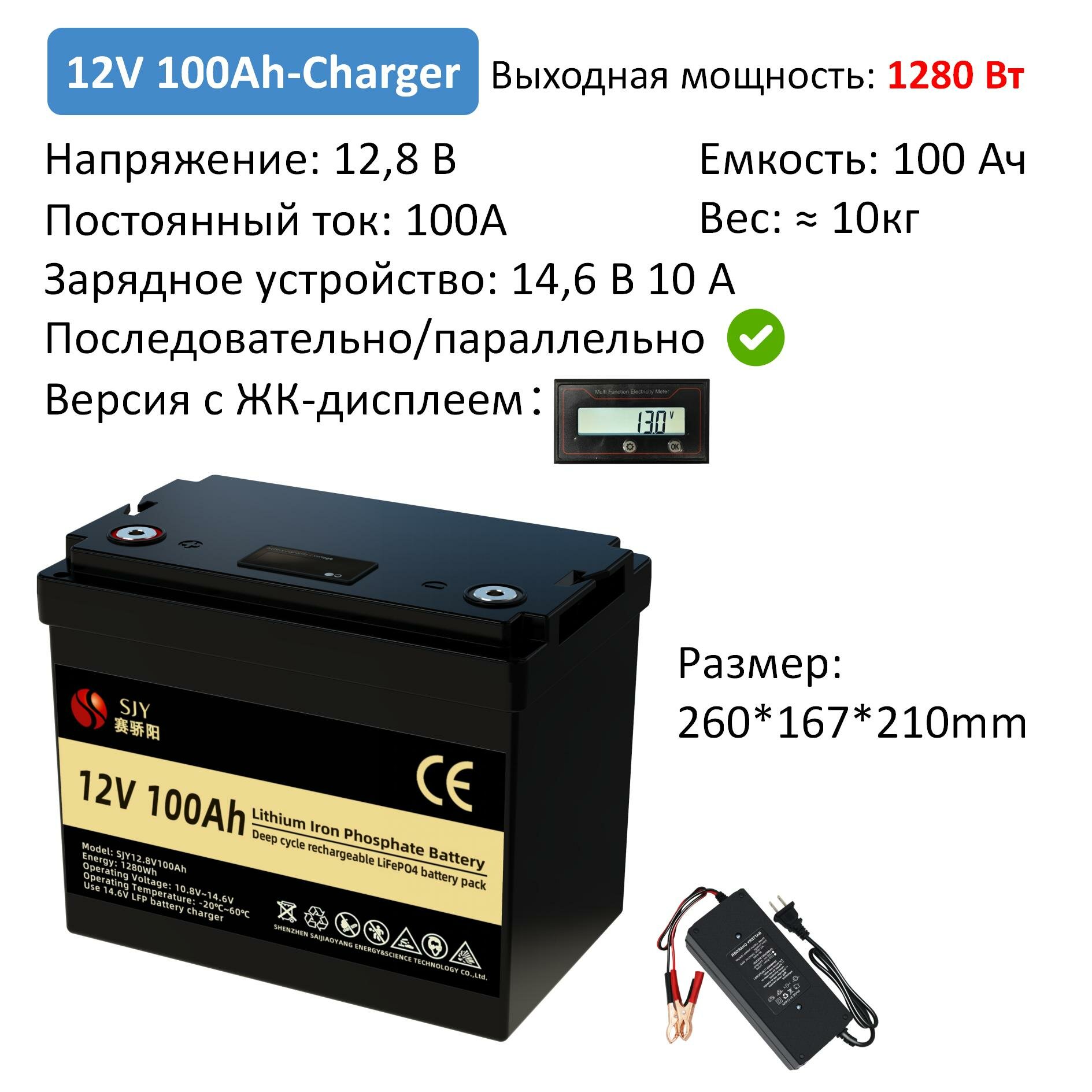 SJY LiFePO4 12 В 100 Ач Литиевая батарея с комплектом зарядного устройства 10 А: сравнение цен, характеристики, фото, актуальное наличие и цены.