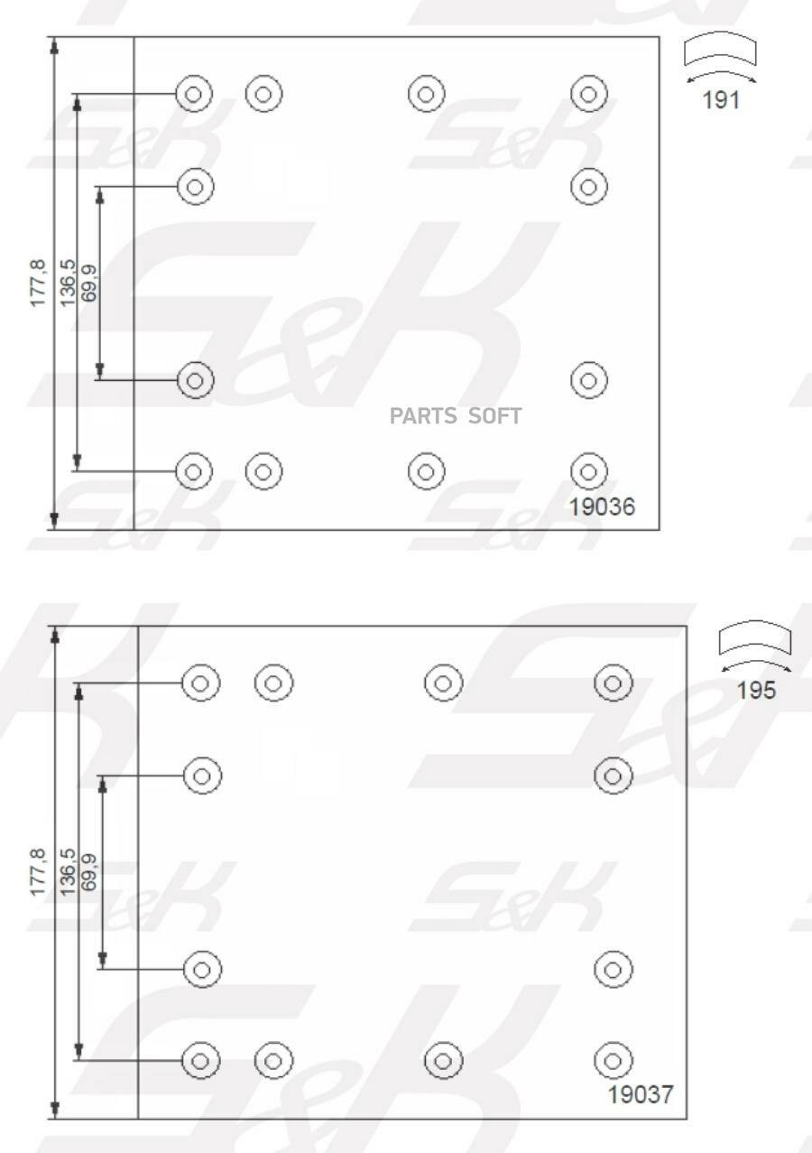 Купить SK1903610PL S&K «Premium Line» Накладки тормозные 1рем (19,6мм) 19036/19037 [419×178) с доставкой по всей России.