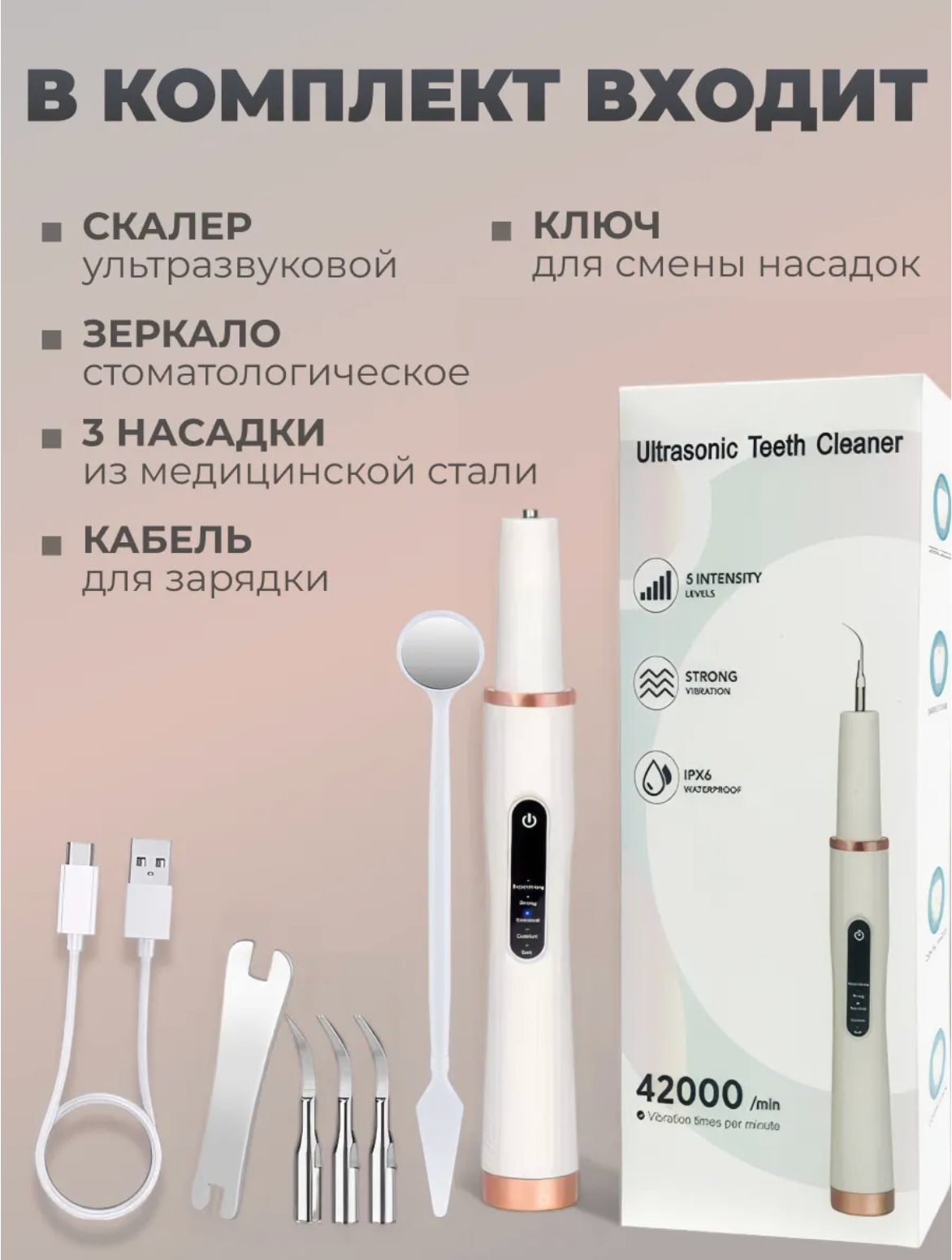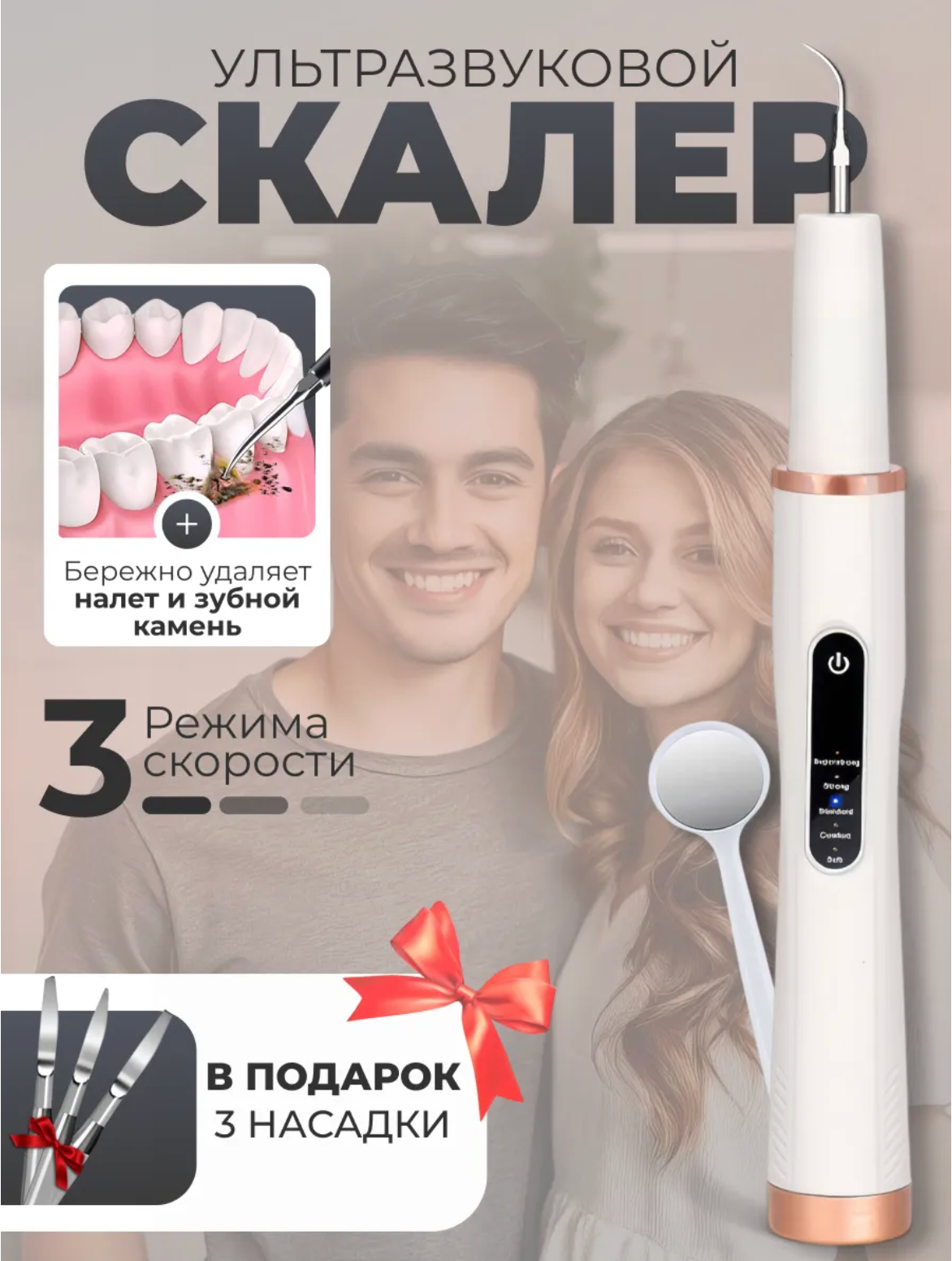 Скалер для зубов и удаления зубного камня, ультразвуковой, 4 насадки, 5 режимов работы, белый: сравнение цен, характеристики, фото, актуальное наличие и цены.