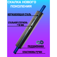 Особенностью скалки являются вращающиеся ручки, которые обеспечивают удобство и комфорт при работе. Длина рабочей части без ручек составляет 45 см, а диаметр – 100 мм.