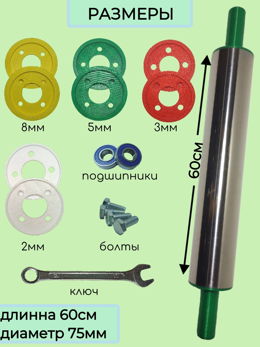 Профессиональная скалка с ограничителями крутящаяся большая. Этот непревзойденный помощник станет вашим верным спутником в приготовлении самых разнообразных блюд, от лаваша и чебуреков до роскошного торта "Наполеон" и хрустящего слоеного теста для ваших круассанов. Рабочая часть из металла имеет внушительные размеры: длина 60 см и диаметр 75 мм. Это позволяет вам равномерно раскатывать тесто с регулируемой толщиной, создавая идеальные условия для выпечки. Благодаря крутящимся ручкам на подшипниках вы сможете с легкостью управлять процессом, не переживая о безопасности. Наша большая скалка предназначена не только для домашнего использования. Она широко применяется в кафе, ресторанах и производстве хлебобулочных изделий, благодаря чему можно повысить производительность и улучшить качество выпечки.