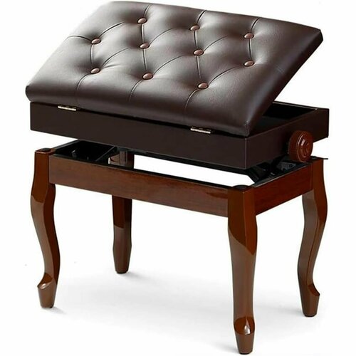 Материал табурета для пианино: Наш табурет для пианино изготовлен из цельной деревянной рамы, сиденье обито поролоном, обтянуто кожей PU, которую можно легко очистить влажной тканью, и снабжен сверхпрочными стальными опорами, способными выдержать до 120 кг.