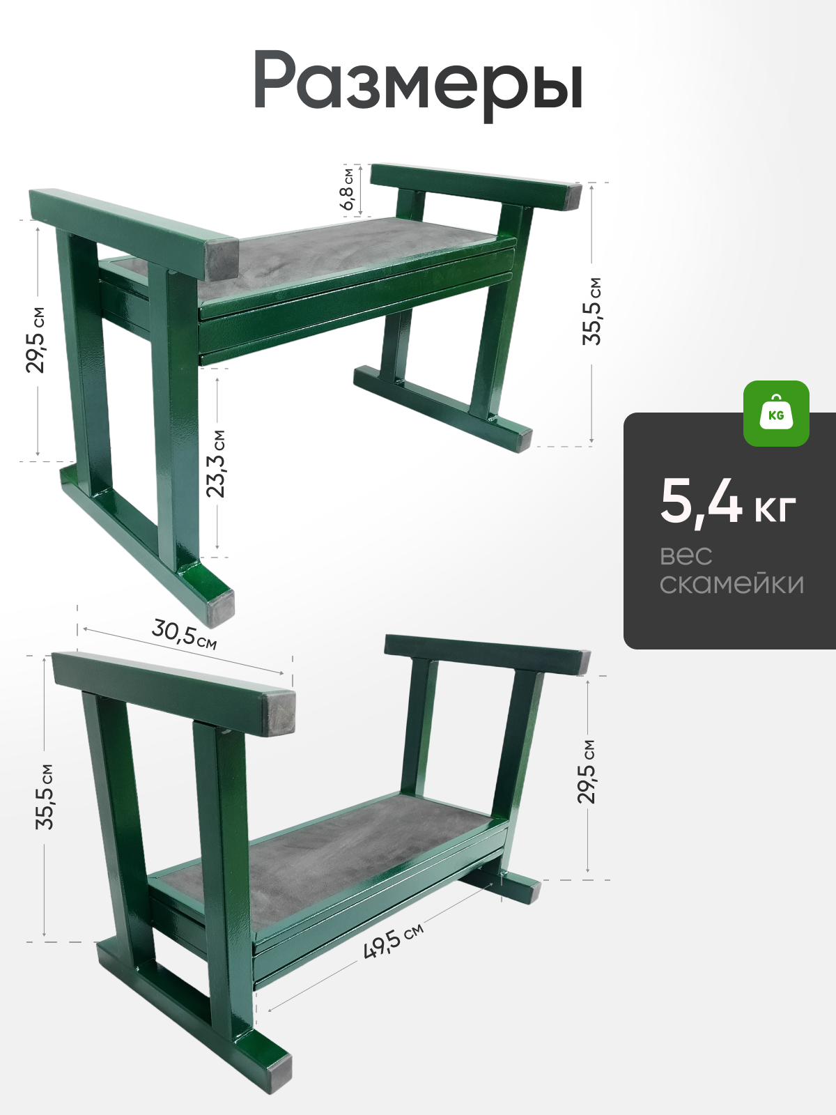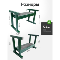 - Универсальная конструкция для работы и отдыха. В обычном положении это удобная скамейка для отдыха. При переворачивании на 180° ножки становятся ручками – опорами для опускания на колени и подъема без рывковой нагрузки на спину.