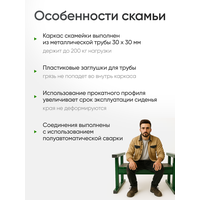 - Прочный стальной каркас. Основание скамейки выполнено из сверхпрочной стали и выдерживает нагрузку 200 кг. При соблюдении условий эксплуатации скамейка прослужит долгие годы, сохранив первозданный вид.