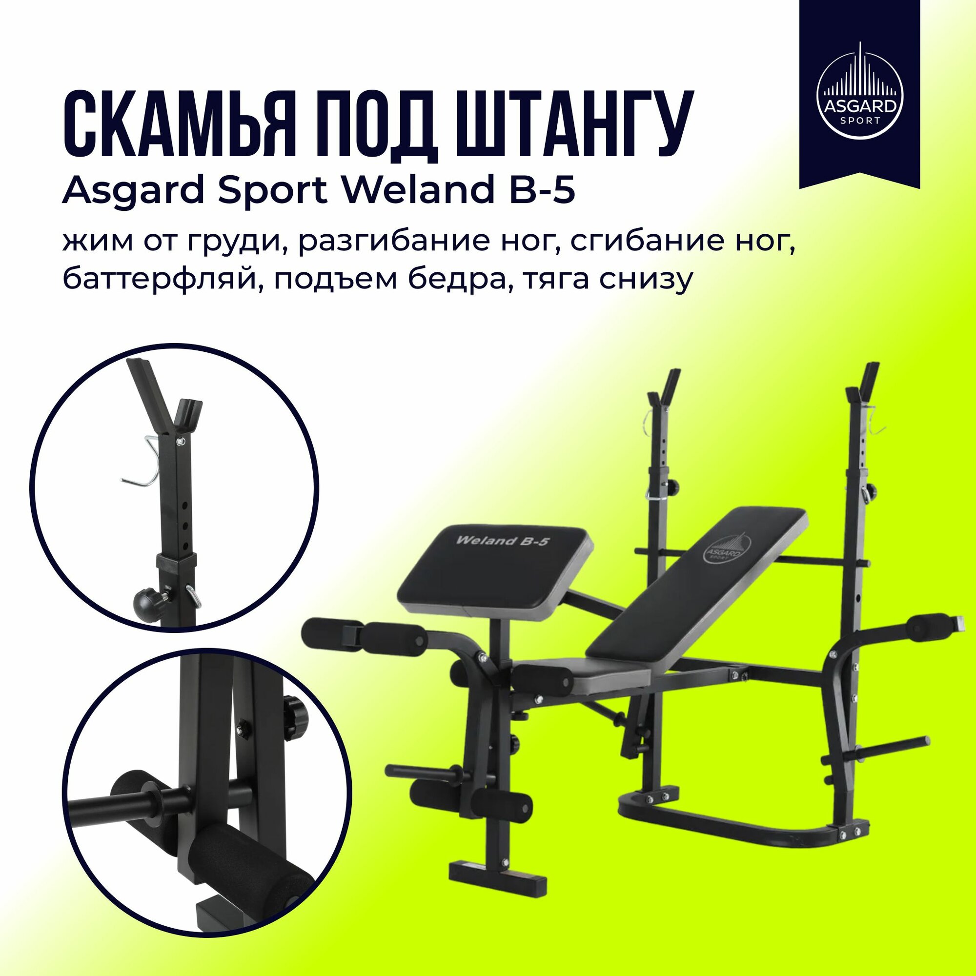 Скамья под штангу Asgard Sport Weland B-5 - это надежный и функциональный тренажер, который поможет вам поддерживать хорошую физическую форму и разнообразить тренировки.