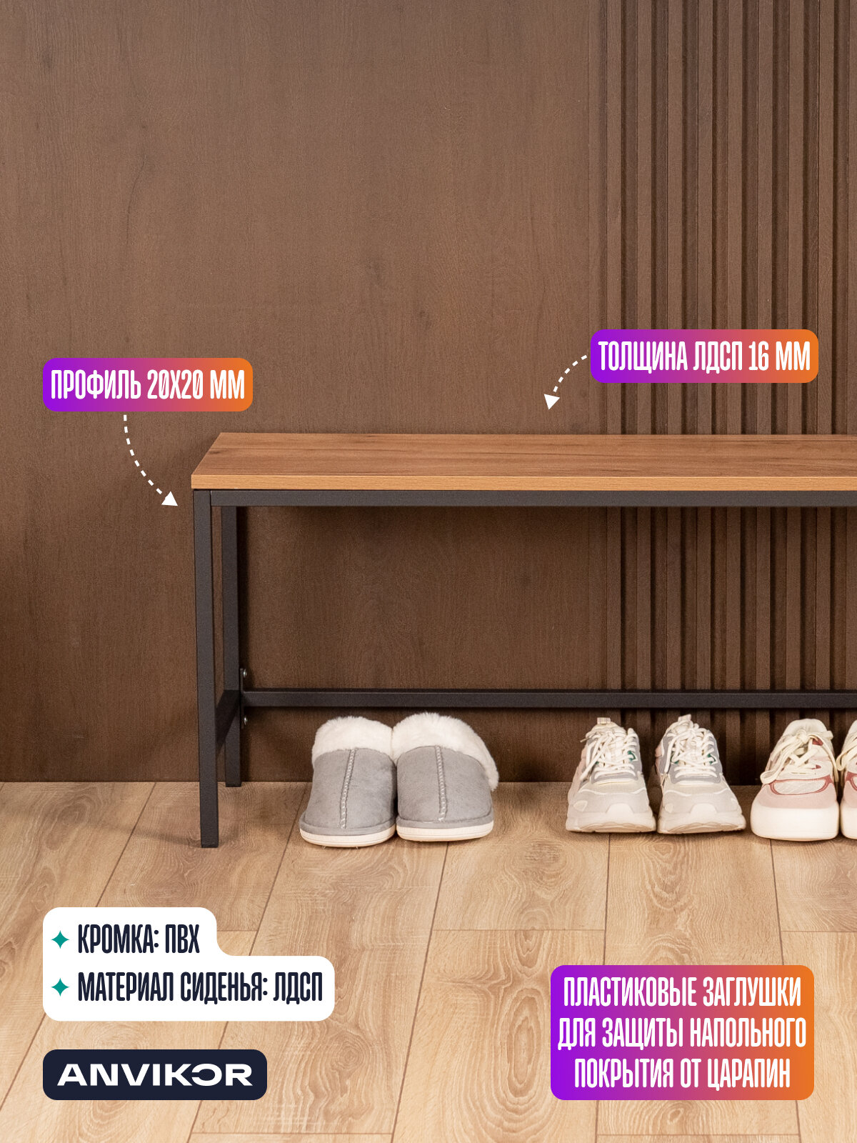 Скамья банкетка для прихожей дома спортзала в стиле лофт Велета черный/коричневый: сравнение цен, характеристики, фото, актуальное наличие и цены.