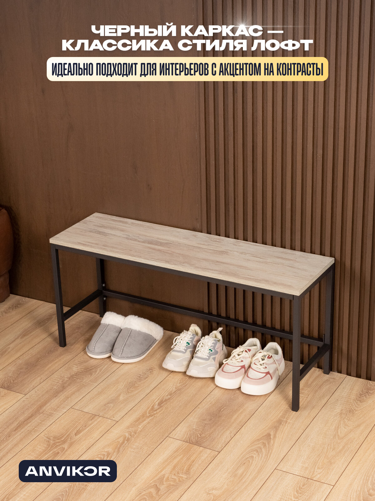 Скамья банкетка для прихожей дома спортзала в стиле лофт Велета черный/серый: сравнение цен, характеристики, фото, актуальное наличие и цены.