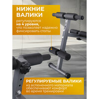 5 уровней регулировки угла наклона скамьи для жима позволяют менять нагрузку и эффективно прорабатывать разные группы мышц. Вы можете выполнять подъемы корпуса для прокачки пресса, подъемы ног для нижнего отдела живота, а также использовать скамью для упражнений с гантелями. Эргономичные регулируемые валики из вспененного материала обеспечивают комфорт во время тренировки. Нижние валики регулируются на 4 уровня, что позволяет надежно фиксировать стопы. Дополнительные удобства включают стойку для отжиманий и упоры, расширяющие спектр упражнений.