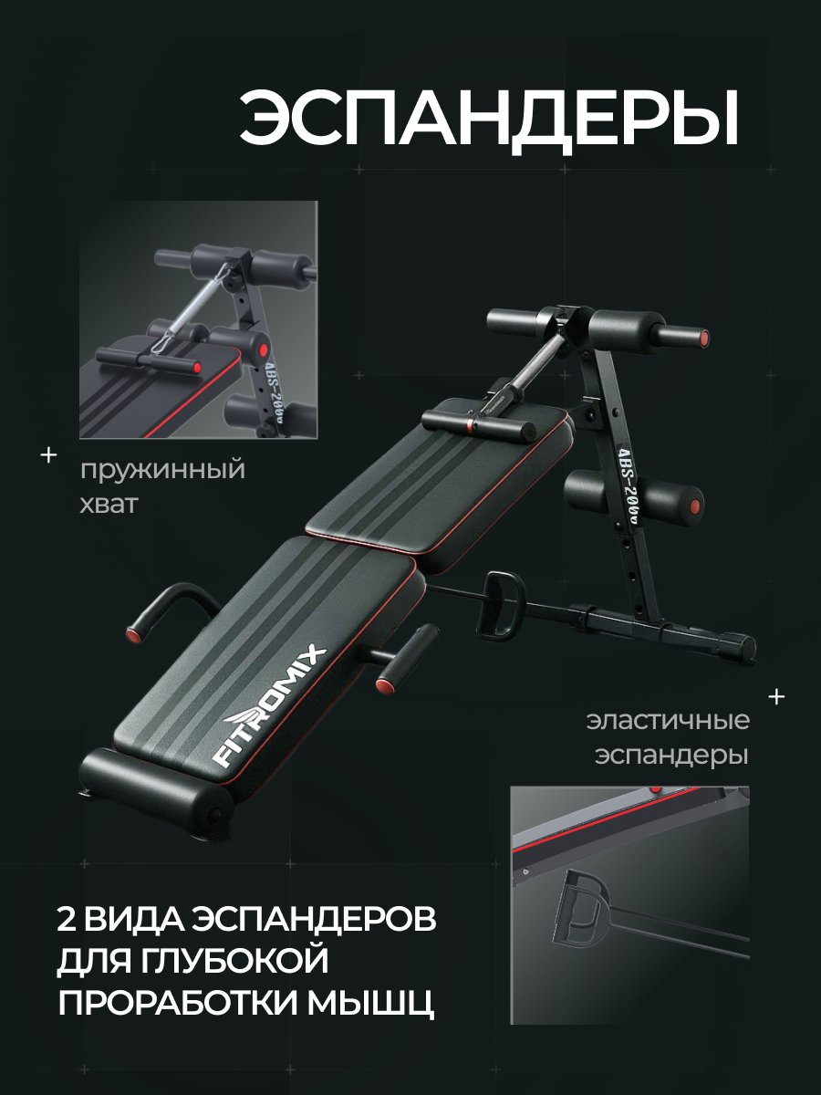 Скамья для пресса FITRONIX «ABS-2000», универсальная, с эспандером, складная, до 120кг, скамья для жима