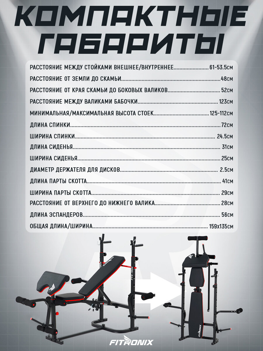 Скамья для жима FITRONIX FTX-1900, скамья для пресса/растяжки/скотта/универсальная, до 120кг, до 250кг: сравнение цен, характеристики, фото, актуальное наличие и цены.