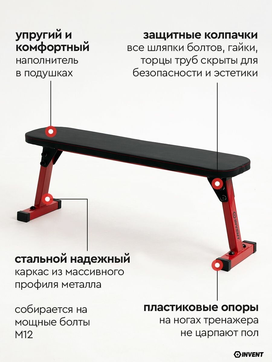 Скамья для жима спортивная горизонтальная, тренажер силовой INVENT SK-01 красный: сравнение цен, характеристики, фото, актуальное наличие и цены.