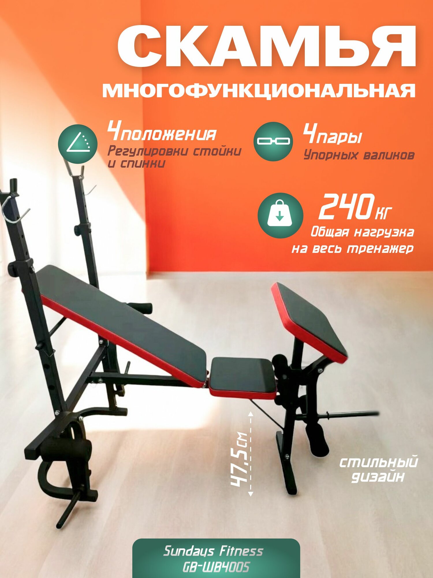 Купить Скамья для жима Sundays Fitness GB-WB4005, 157.5х115х135.5 см, черная/красная с доставкой по всей России.