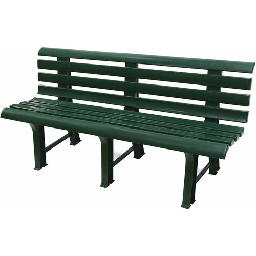 Оснащена спинкой, благодаря чему сидение на скамейке становится более комфортным и удобным.