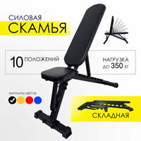 Устойчивая мощная профессиональная складная скамья- подходит любых силовых упражнений с допустимой нагрузкой свыше 350кг. Ножки оснащены пластиком для защиты пола от царапин.
