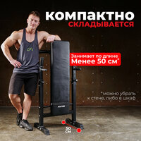 В конце тренировки скамья компактно складывается, занимая по длине менее 50 см – её можно убрать к стене, либо в шкаф.