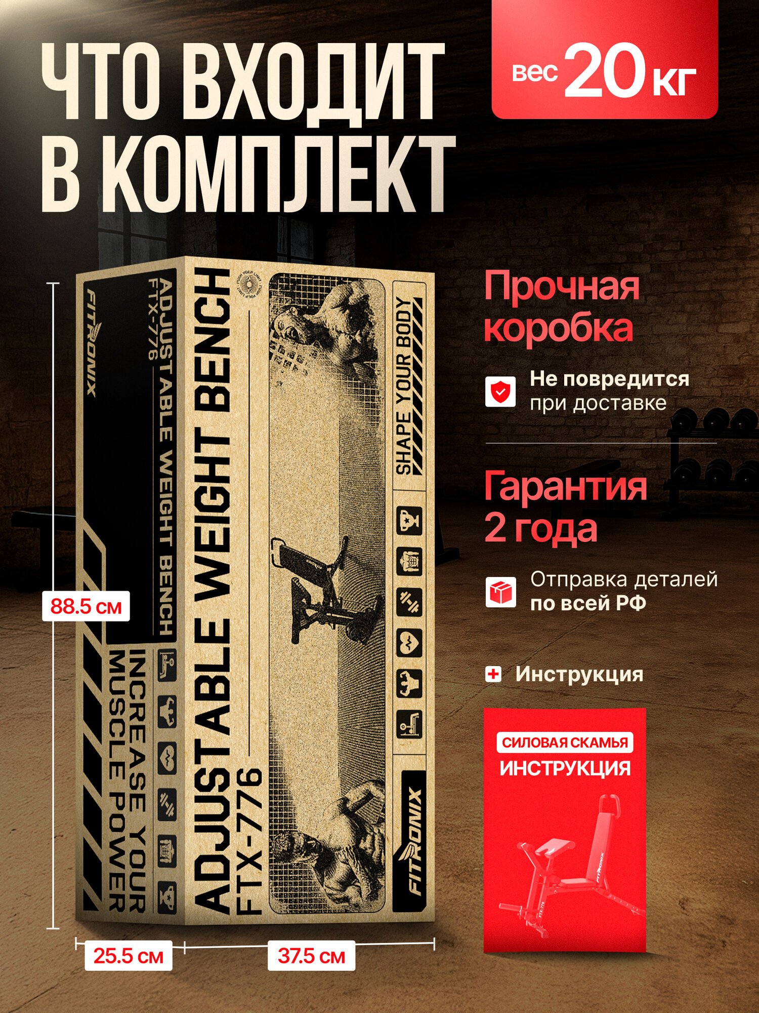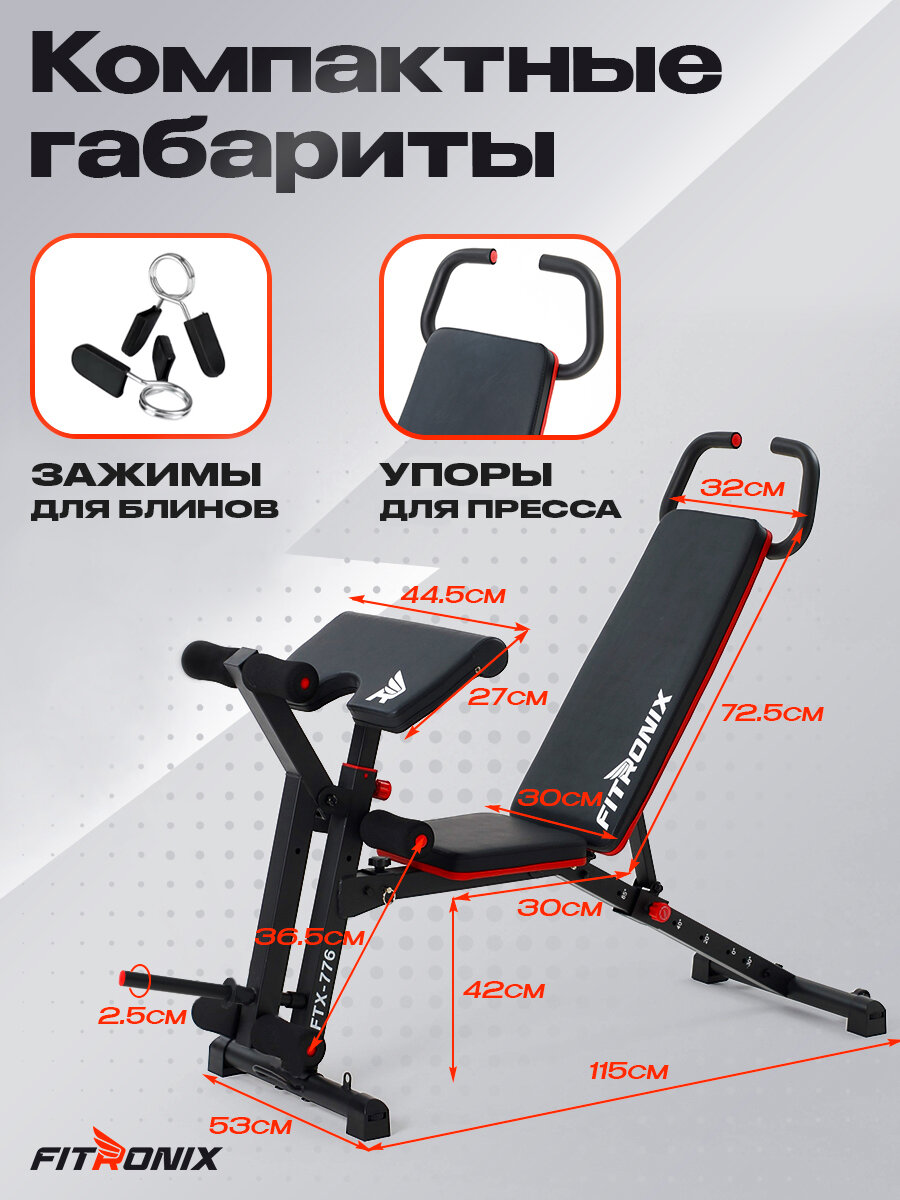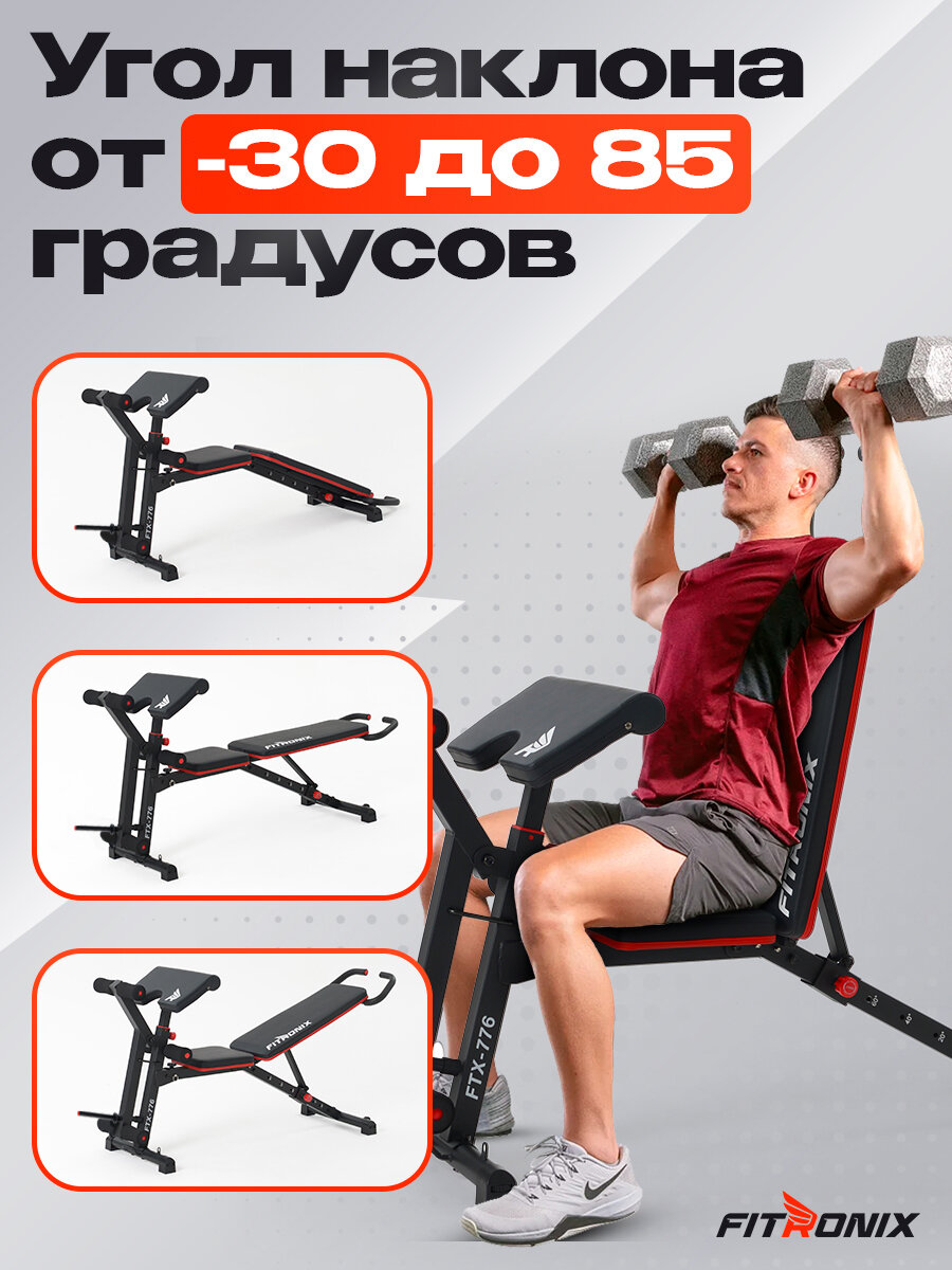 Купить Скамья для жима FITRONIX FTX-776, скамья для пресса, ног, рук, максимальная нагрузка 250 кг с доставкой по всей России.