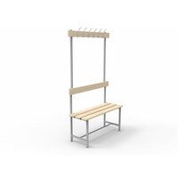 Компактная универсальная скамья титан со спинкой и вешалкой на 6 двухрожковых крючков СВТ-4 предназначена для эксплуатации в раздевалках спортивных учреждений, производственных предприятий. Возможно использование скамеек в гардеробных офисов, в доме и на даче. Габаритные размеры изделия: ширина 1000 мм, глубина 370 мм, высота 1765 мм. Простая и надёжная сборная конструкция выдерживает распределённую нагрузку до 200 кг. Металлический каркас и доски из натуральной древесины обеспечивают надежность и долговечность эксплуатации. Каркас выполнен из стальной профильной трубы размером 25х25х1,2 мм, окрашенного методом порошковой полимеризации в серый цвет, RAL9006. Cиденье и спинка скамьи выполнены из шлифованной деревянной сосновой доски сорта В, толщиной 25 мм, покрытой с лицевой стороны лакосодержащим составом. Поставляется изделие в разобранном виде в компактной картонной таре. Фурнитура и инструкция по сборке в комплекте. Приобретая данную скамью, Вы можете быть уверены в выборе, это качественный товар по доступной цене.